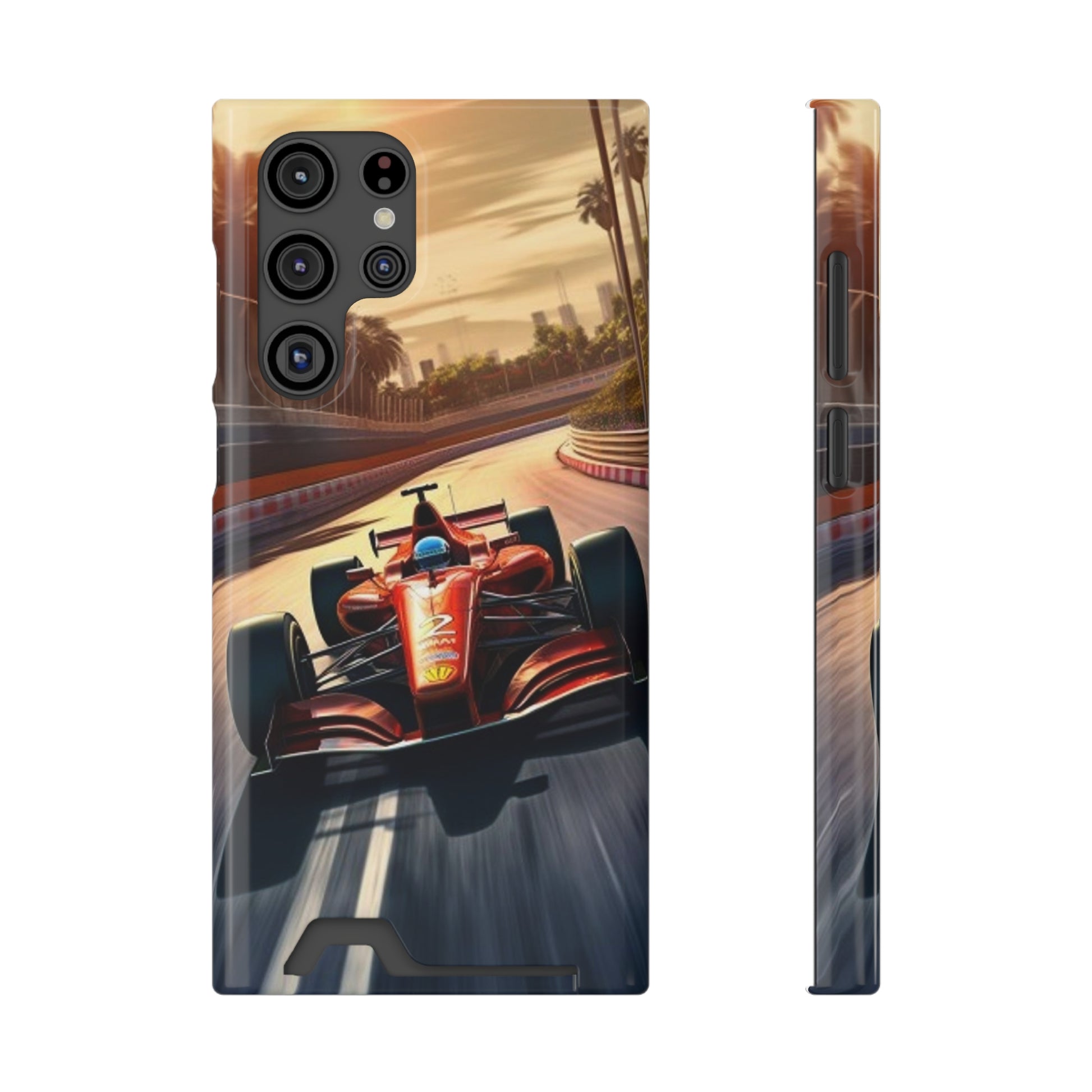 This phone case-cardholder combo will keep essential items safe in one place. Trust the polycarbonate to keep it impact-resistant through regular wear and tear. Create your flashy designs, print them all over the exterior, and choose between a glossy or matte finish. If your customers buy it as a present, gift packaging is available. Compatible with iPhone 13, and Samsung Galaxy S21, S22 models.